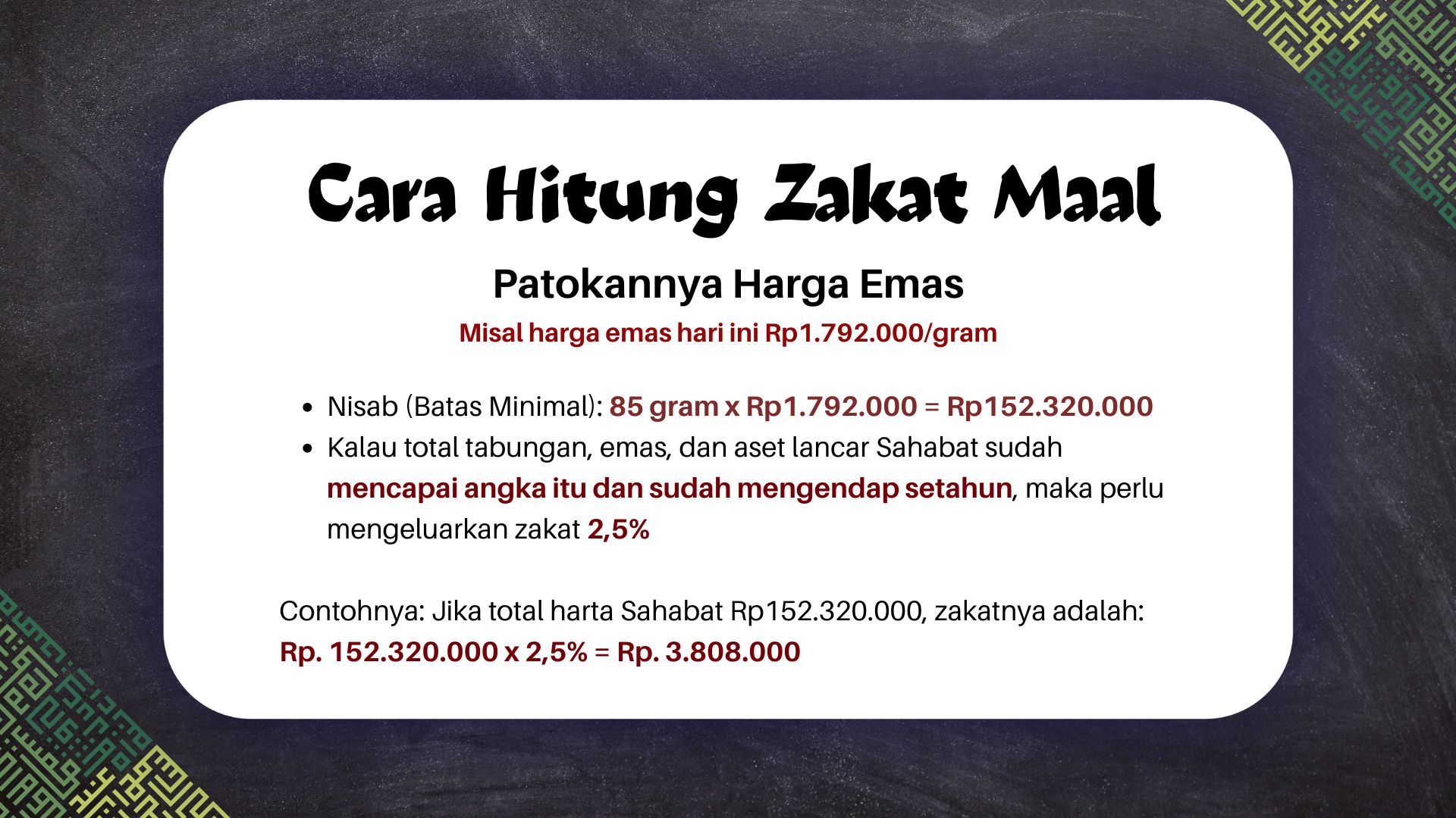 Salah satu ibadah penting yang jangan sampai terlewat adalah zakat maal, yaitu zakat atas harta yang telah mencapai nisab dan dimiliki selama satu tahun (haul).
