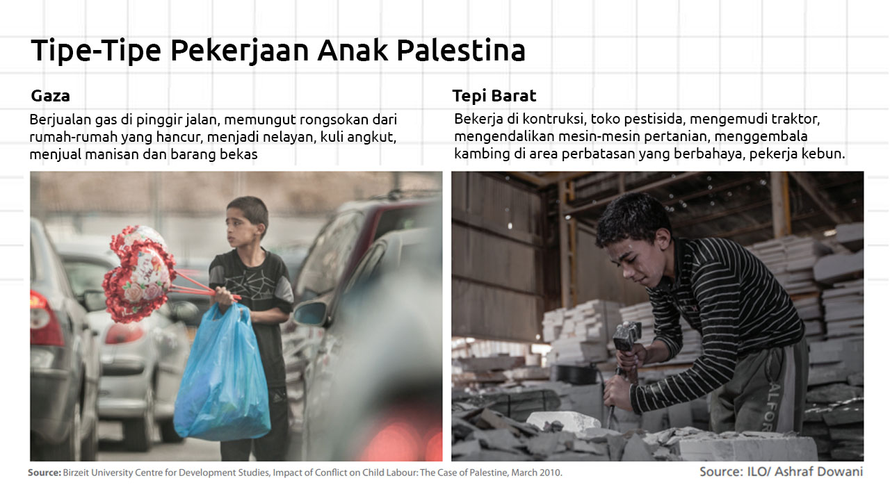 Sejak kecil mereka sudah terbiasa mendengar suara-suara ledakan dan melihat kekejaman tentara-tentara Israel. Mereka hidup dalam “penjara terbesar di dunia” dengan sistem blokade yang membuat mereka kesulitan memperoleh makan, air bersih, apalagi akses pendidikan dan kesehatan. Tumbuh tanpa orang tua, dengan ketidakjelasan masa depan, mengharuskan mereka untuk hidup mandiri sejak dini.