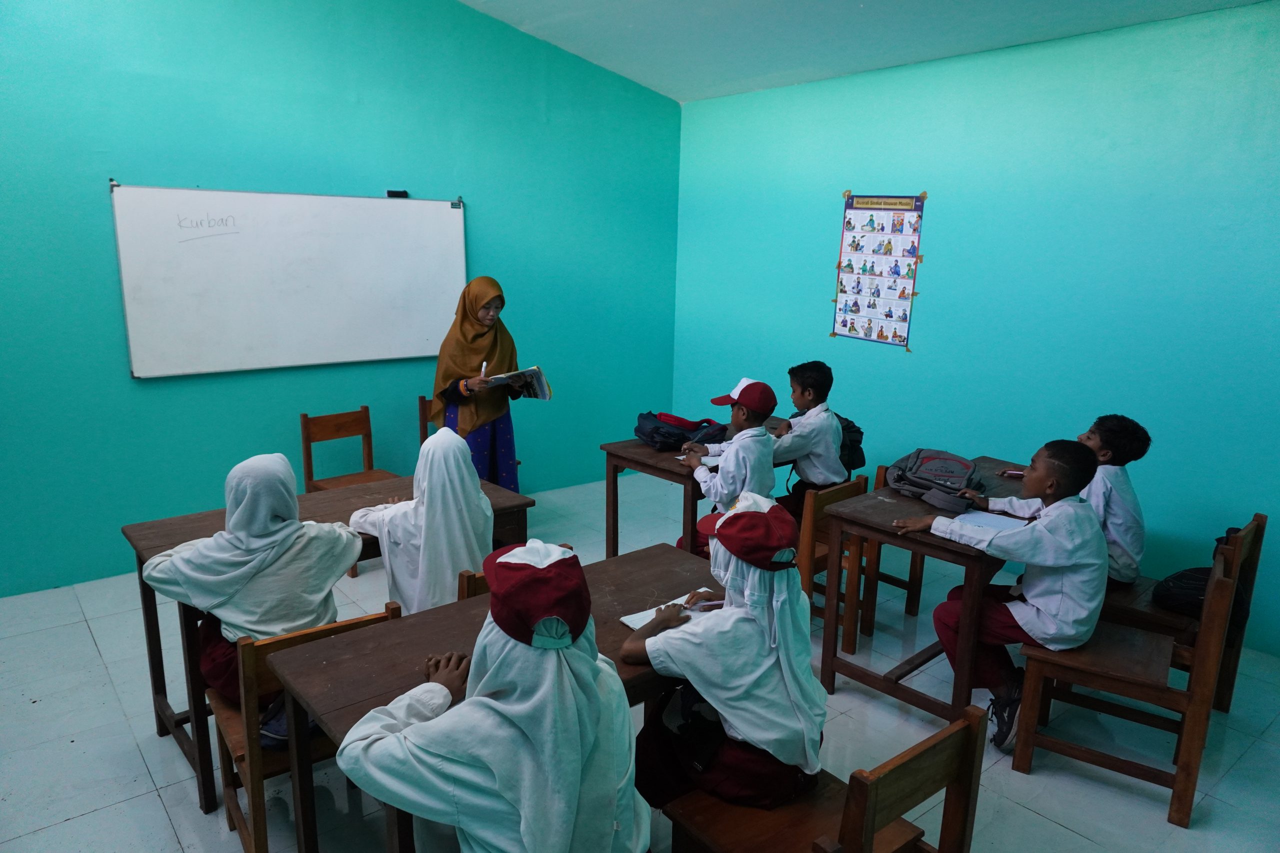 Alhamdulillah, sekolah MIS Al-Furqon kini sudah selesai dibangun. Anak-anak punya ruang belajar yang layak, lengkap dengan bangku sendiri. Mereka tak lagi harus duduk di lantai, dan tak perlu khawatir kepanasan atau kehujanan saat belajar.